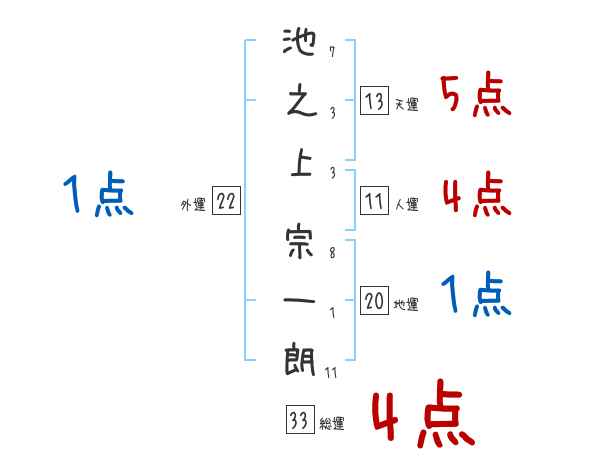 池之上宗一朗さんの画数の鑑定結果