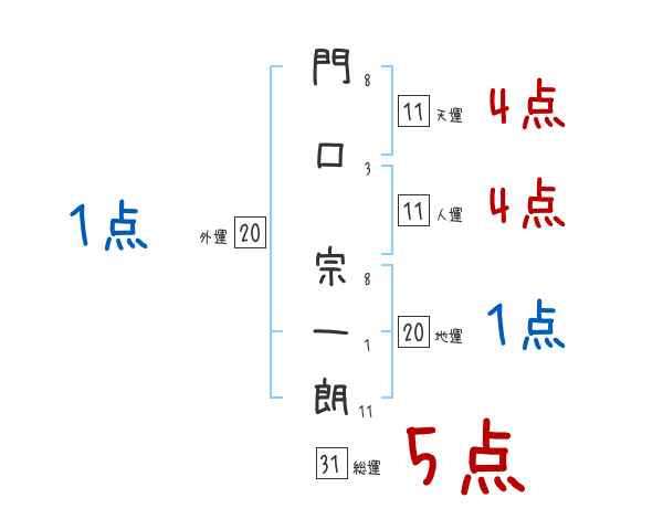 門口宗一朗さんの画数の鑑定結果