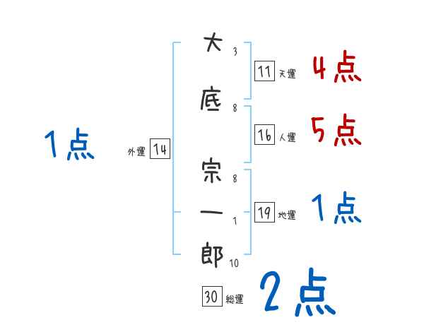 大底宗一郎さんの画数の鑑定結果