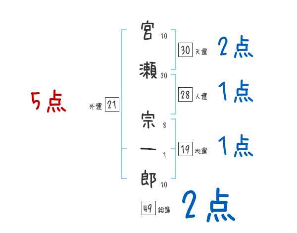 宮瀬宗一郎さんの画数の鑑定結果
