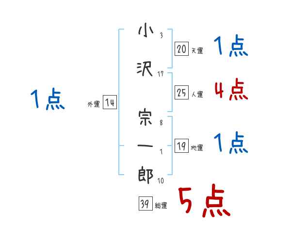 総運![]() | 小沢宗一郎さんの総運は39画の5つ星!社交性に優れ人望が厚い。人の上に立ち成功する。 あなたの人生を表す1番重要な運勢です。生涯を通じて影響する総合運となり、主に50歳以降の晩年期に影響を及ぼします。 |