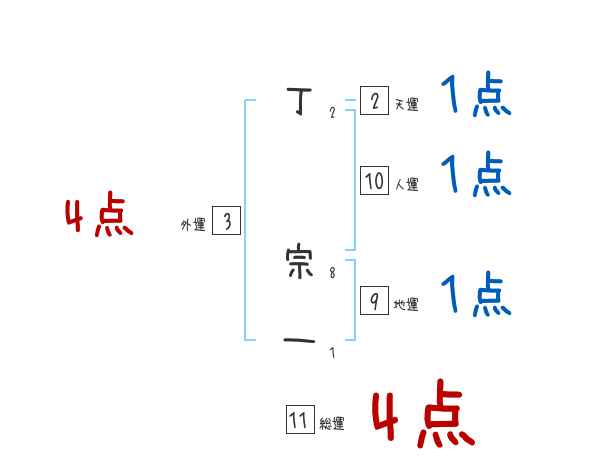 丁宗一さんの画数の鑑定結果