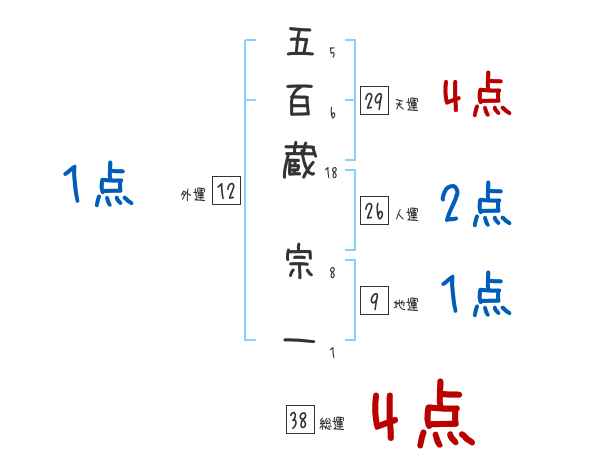 総運![]() | 五百蔵宗一さんの総運は38画の4つ星!温厚な性格で技術的な才能を発揮する。職人的な仕事に向いている。 あなたの人生を表す1番重要な運勢です。生涯を通じて影響する総合運となり、主に50歳以降の晩年期に影響を及ぼします。 |