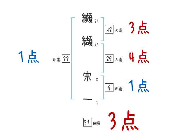 外運![]() | 纐纈宗一さんの外運は22画の1つ星!努力することが苦手ないっぽう手先が器用。芸術性にも優れる。 生活面を象徴する運勢です。外部から受ける影響力を表し、結婚運、家庭運や職場、環境への順応性を表します。 |