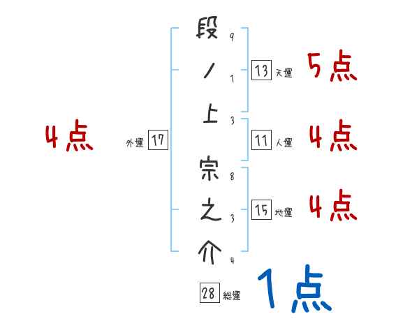 段ノ上宗之介さんの画数の鑑定結果
