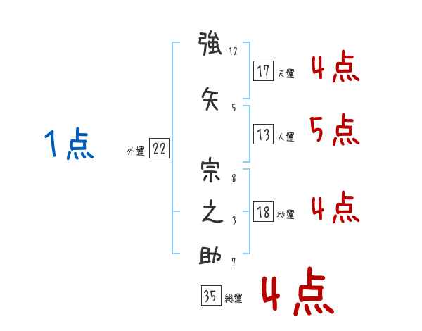 外運![]() | 強矢宗之助さんの外運は22画の1つ星!努力することが苦手ないっぽう手先が器用。芸術性にも優れる。 生活面を象徴する運勢です。外部から受ける影響力を表し、結婚運、家庭運や職場、環境への順応性を表します。 |