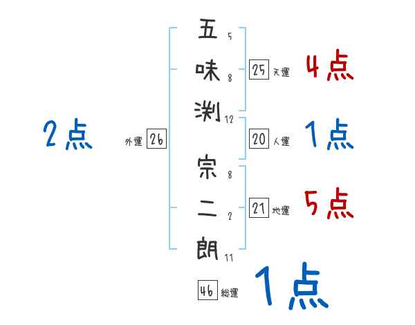 五味渕宗二朗さんの画数の鑑定結果