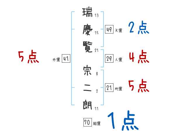 瑞慶覧宗二朗さんの画数の鑑定結果