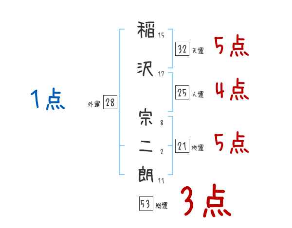 稲沢宗二朗さんの画数の鑑定結果