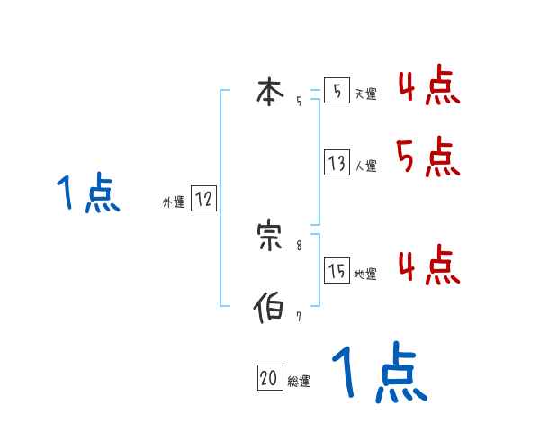 本宗伯さんの画数の鑑定結果
