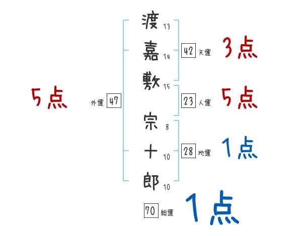渡嘉敷宗十郎さんの画数の鑑定結果