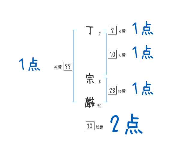 丁宗厳さんの画数の鑑定結果