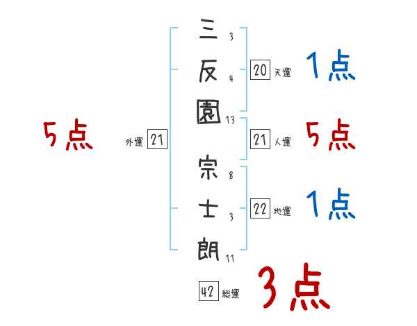 三反園宗士朗さんの画数の鑑定結果