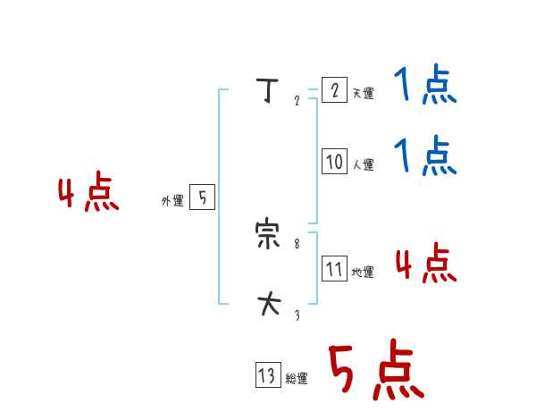 丁宗大さんの画数の鑑定結果