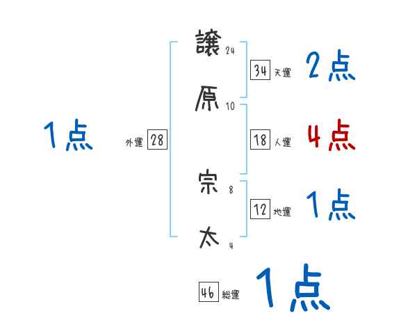 外運![]() | 譲原宗太さんの外運は28画の1つ星!家庭環境に注意。スポーツで活躍できる能力があるかも。 生活面を象徴する運勢です。外部から受ける影響力を表し、結婚運、家庭運や職場、環境への順応性を表します。 |