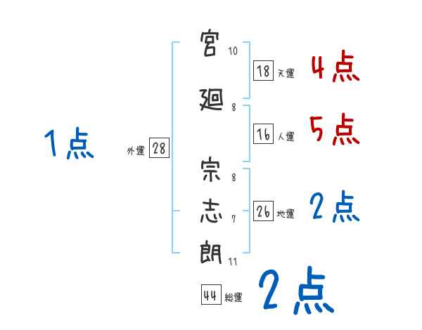 宮廻宗志朗さんの画数の鑑定結果