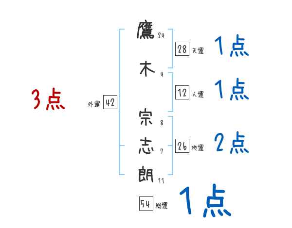 鷹木宗志朗さんの画数の鑑定結果
