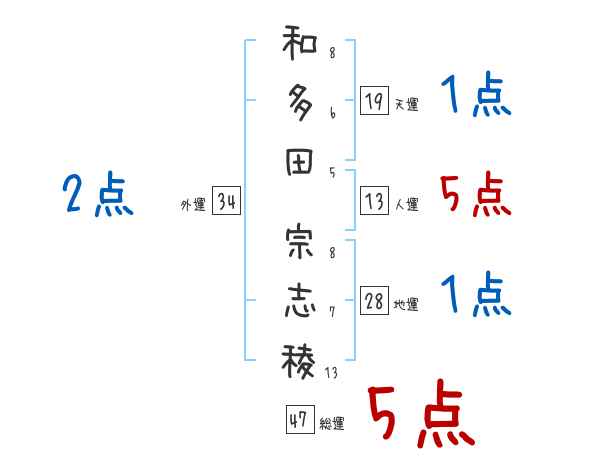 和多田宗志稜さんの画数の鑑定結果