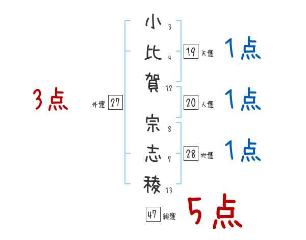 小比賀宗志稜さんの画数の鑑定結果