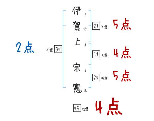 天運![]() | 伊賀上宗憲さんの天運は21画の5つ星!統率力がある。独立し成功する。名誉を手に入れる。 家系が持つ宿命的な運勢を表します。祖先から受け継いだ苗字ですので自分の力が及びません。家柄を象徴します。 |