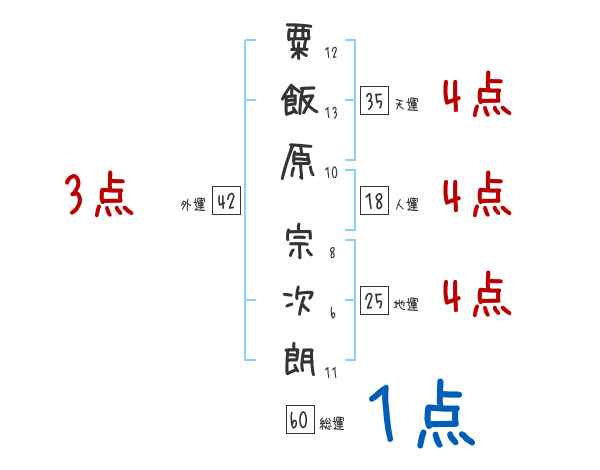 粟飯原宗次朗さんの画数の鑑定結果