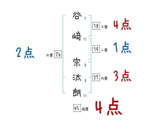 谷﨑宗汰朗さんの画数の鑑定結果