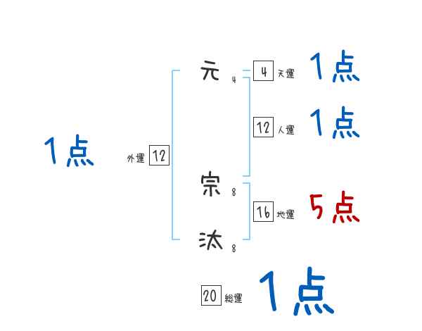 元宗汰さんの画数の鑑定結果