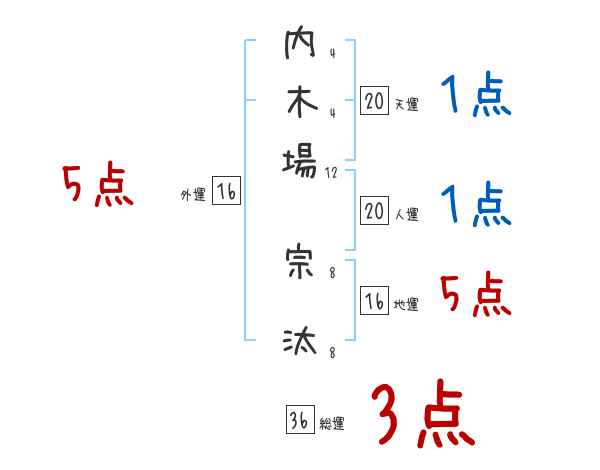 内木場宗汰さんの画数の鑑定結果