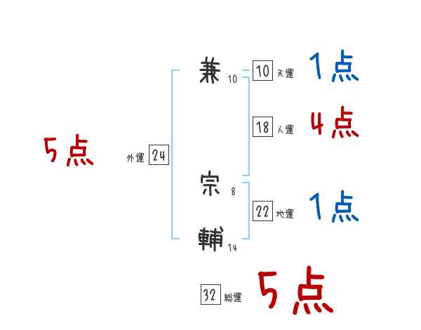 兼宗輔さんの画数の鑑定結果