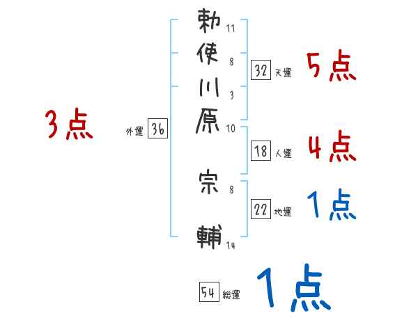 天運![]() | 勅使川原宗輔さんの天運は32画の5つ星!柔軟性があり成功する。チャンスが多く金運が良い。 家系が持つ宿命的な運勢を表します。祖先から受け継いだ苗字ですので自分の力が及びません。家柄を象徴します。 |