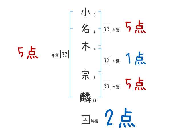 小名木宗麟さんの画数の鑑定結果