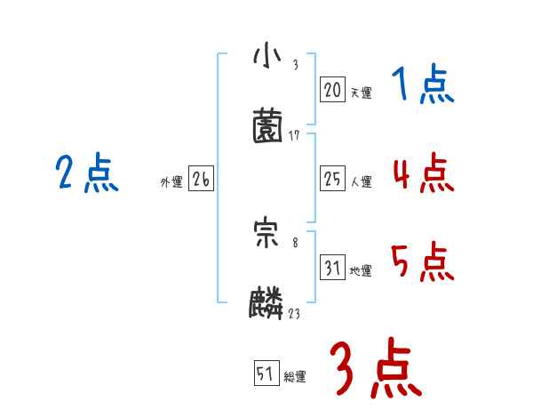小薗宗麟さんの画数の鑑定結果