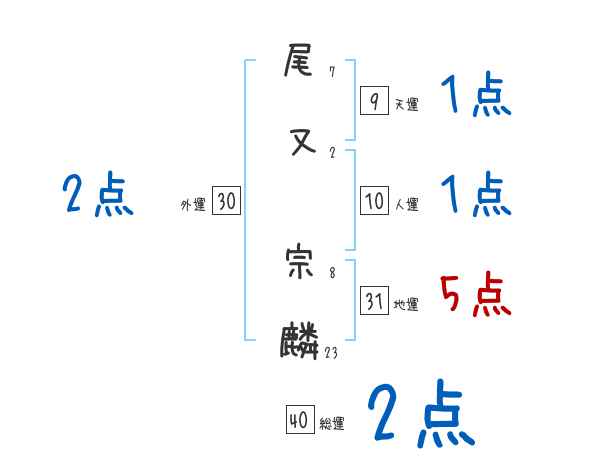 尾又宗麟さんの画数の鑑定結果