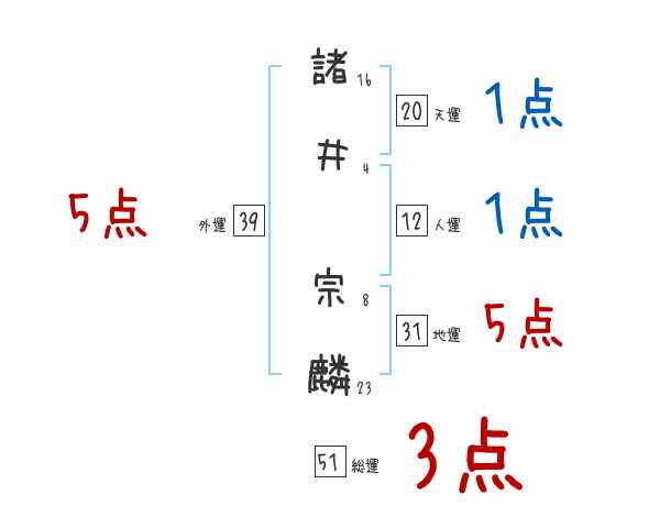諸井宗麟さんの画数の鑑定結果
