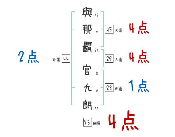 與那覇官九朗さんの画数の鑑定結果
