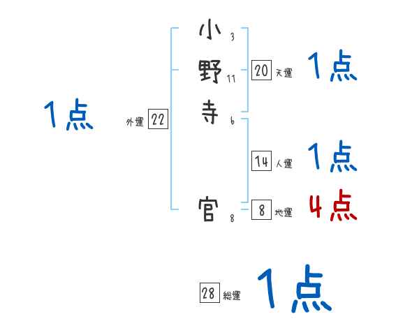 小野寺官さんの画数の鑑定結果