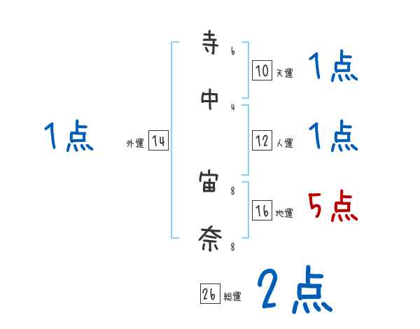 寺中宙奈さんの画数の鑑定結果