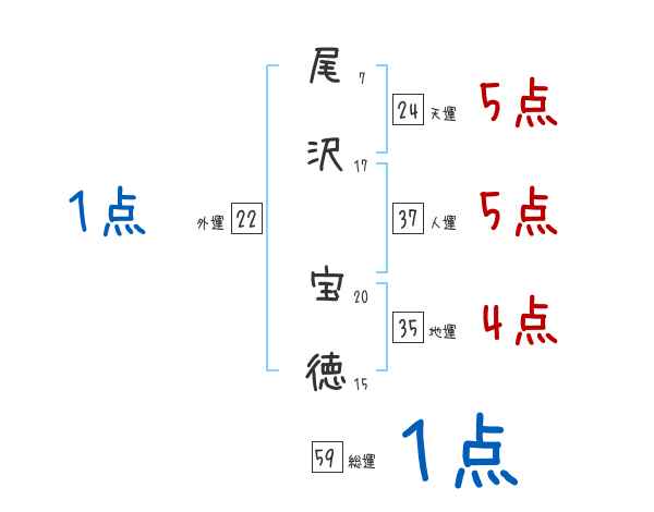 尾沢宝徳さんの画数の鑑定結果