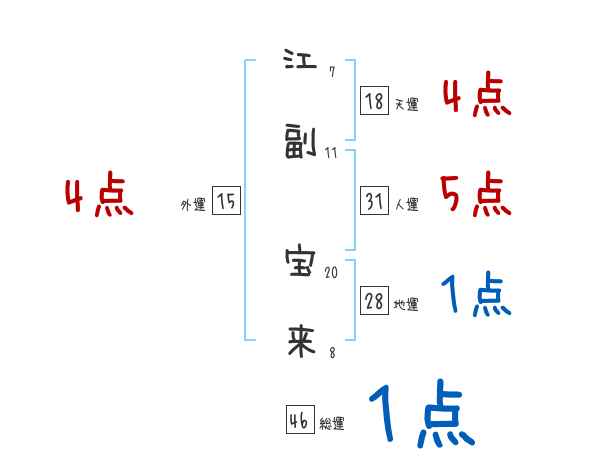 江副宝来さんの画数の鑑定結果