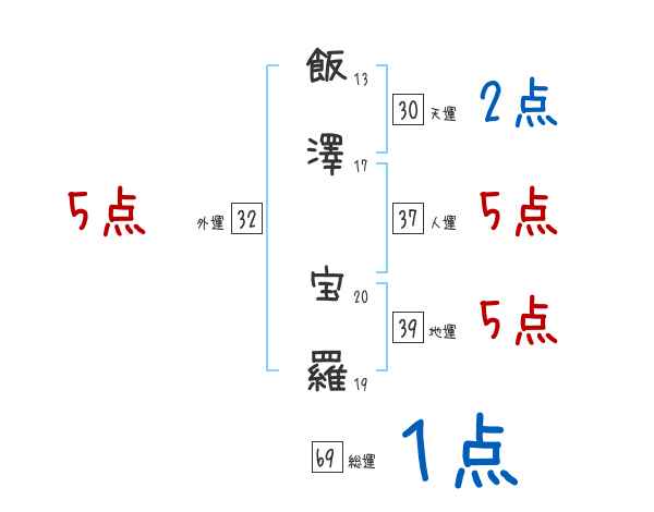 飯澤宝羅さんの画数の鑑定結果