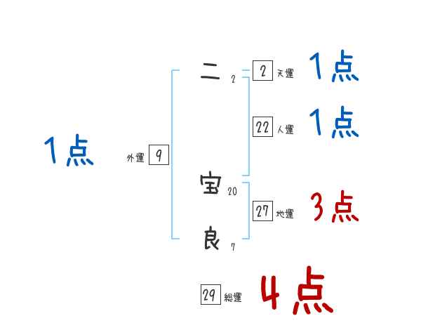 二宝良さんの画数の鑑定結果