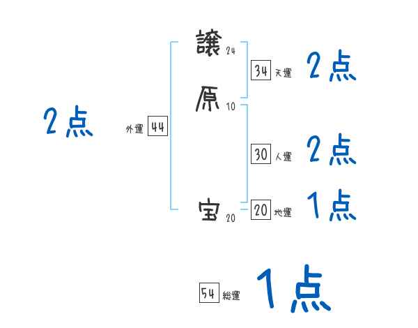 譲原宝さんの画数の鑑定結果