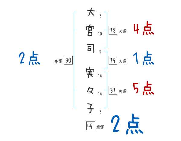 大宮司実々子さんの画数の鑑定結果