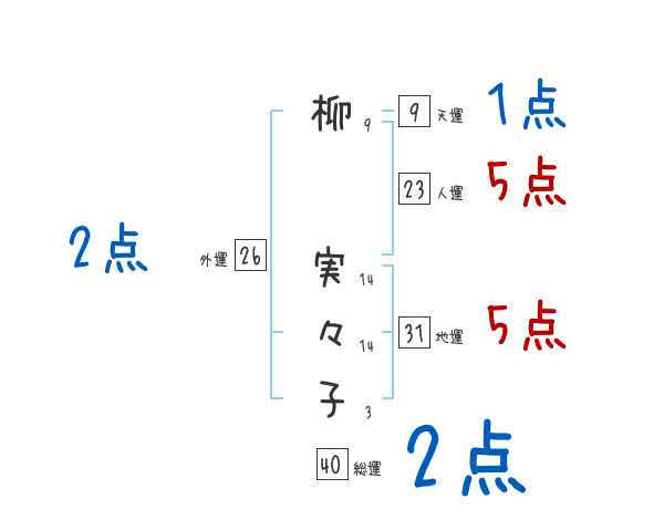 外運![]() | 柳実々子さんの外運は26画の2つ星!波瀾万丈かも。信頼できる人を大事にしましょう。 生活面を象徴する運勢です。外部から受ける影響力を表し、結婚運、家庭運や職場、環境への順応性を表します。 |