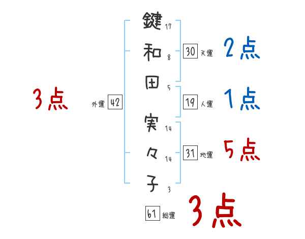鍵和田実々子さんの画数の鑑定結果