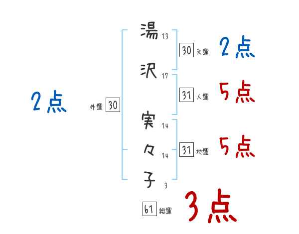 湯沢実々子さんの画数の鑑定結果