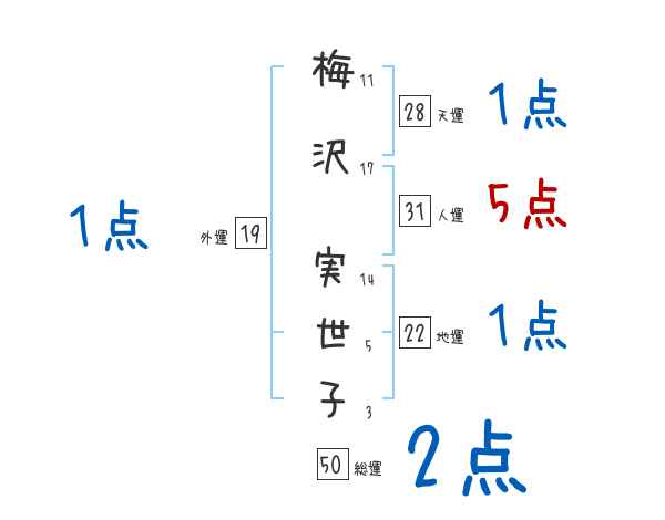 梅沢実世子さんの画数の鑑定結果