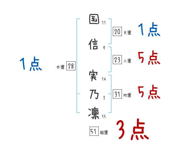 国信実乃凛さんの画数の鑑定結果