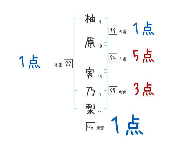 柚原実乃梨さんの画数の鑑定結果