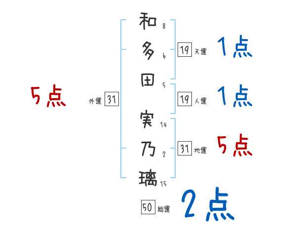 和多田実乃璃さんの画数の鑑定結果